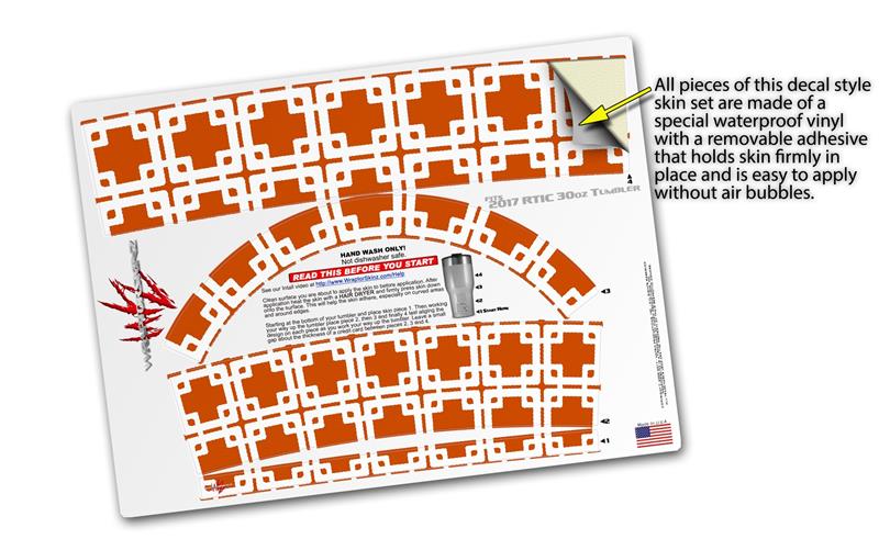 WraptorSkinz® skin wraps for 2017 RTIC Tumblers are printed using superb photo quality designs and vibrant colors printed with special fade resistant inks that last even in direct sun for years. WraptorSkinz® are a composite of two layers of commercial grade materials. The bottom layer is a soft, flexible vinyl with a special removable adhesive that is easily positioned, applied without air bubbles. Next we print the bottom layer with UV protected, fade resistant inks that deliver superb photo quality designs in vibrant colors. Finally we bond a professional grade laminate over the entire skin adding a glossy protective finish.