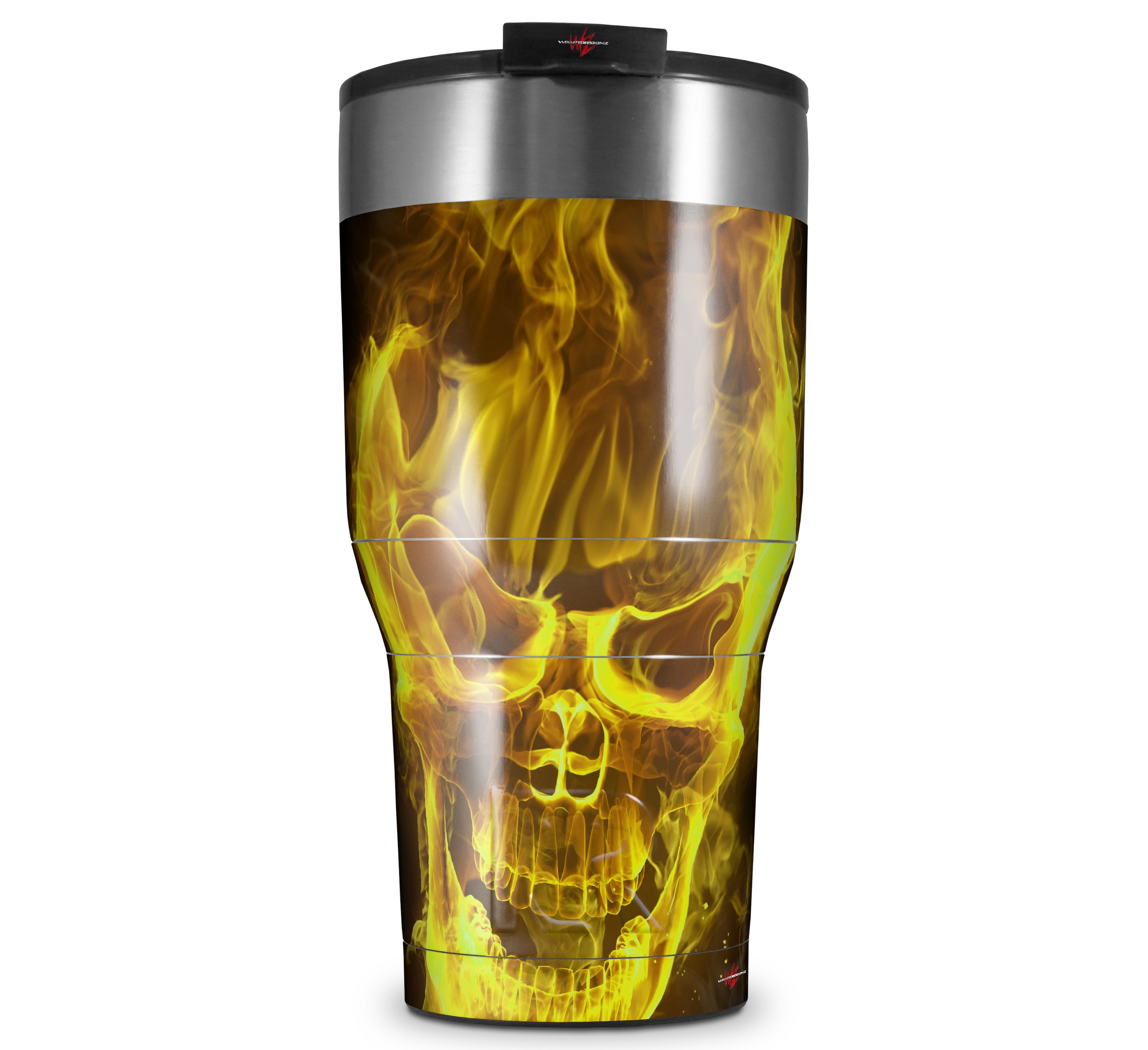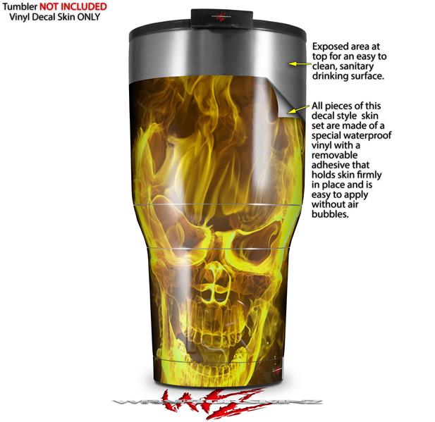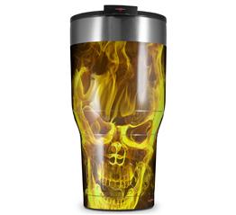WraptorSkinz Skin Wrap compatible with 2017 and newer RTIC Tumblers 30oz Flaming Fire Skull Yellow (TUMBLER NOT INCLUDED)