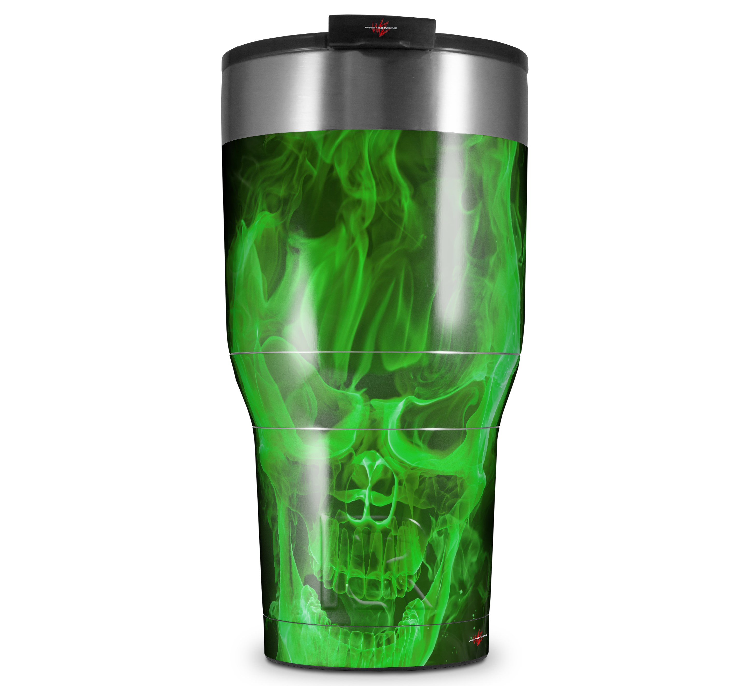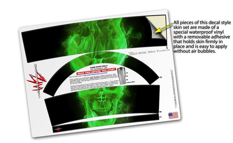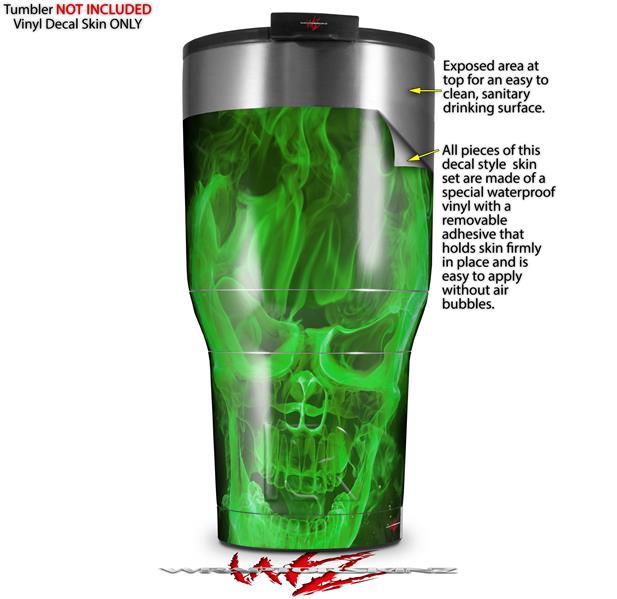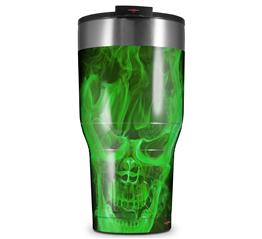 WraptorSkinz Skin Wrap compatible with 2017 and newer RTIC Tumblers 30oz Flaming Fire Skull Green (TUMBLER NOT INCLUDED)