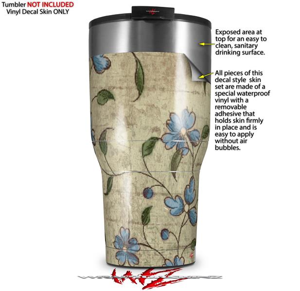 WraptorSkinz Skin Wrap compatible with 2017 and newer RTIC Tumblers 30oz Flowers and Berries Blue (TUMBLER NOT INCLUDED)