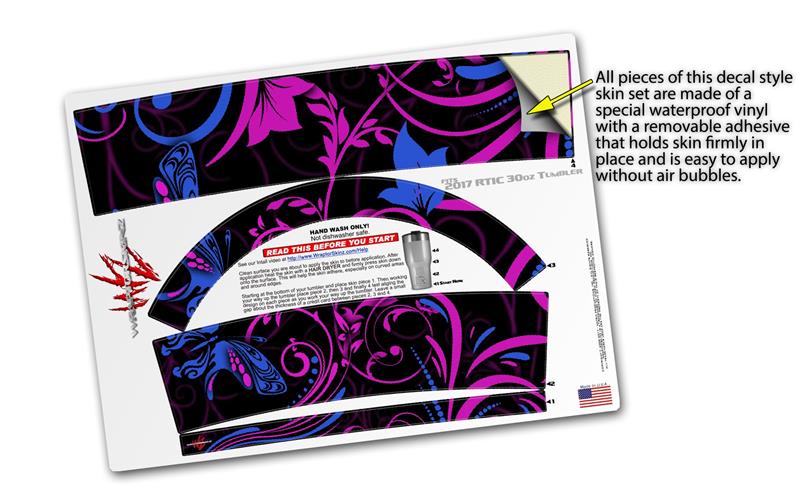 WraptorSkinz Skin Wrap compatible with 2017 and newer RTIC Tumblers 30oz Twisted Garden Hot Pink and Blue (TUMBLER NOT INCLUDED)