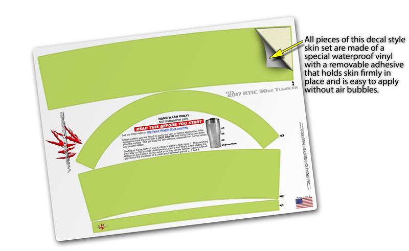 WraptorSkinz® skin wraps for 2017 RTIC Tumblers are printed using superb photo quality designs and vibrant colors printed with special fade resistant inks that last even in direct sun for years. WraptorSkinz® are a composite of two layers of commercial grade materials. The bottom layer is a soft, flexible vinyl with a special removable adhesive that is easily positioned, applied without air bubbles. Next we print the bottom layer with UV protected, fade resistant inks that deliver superb photo quality designs in vibrant colors. Finally we bond a professional grade laminate over the entire skin adding a glossy protective finish.