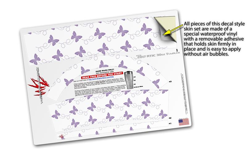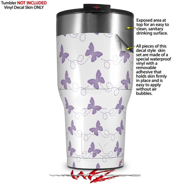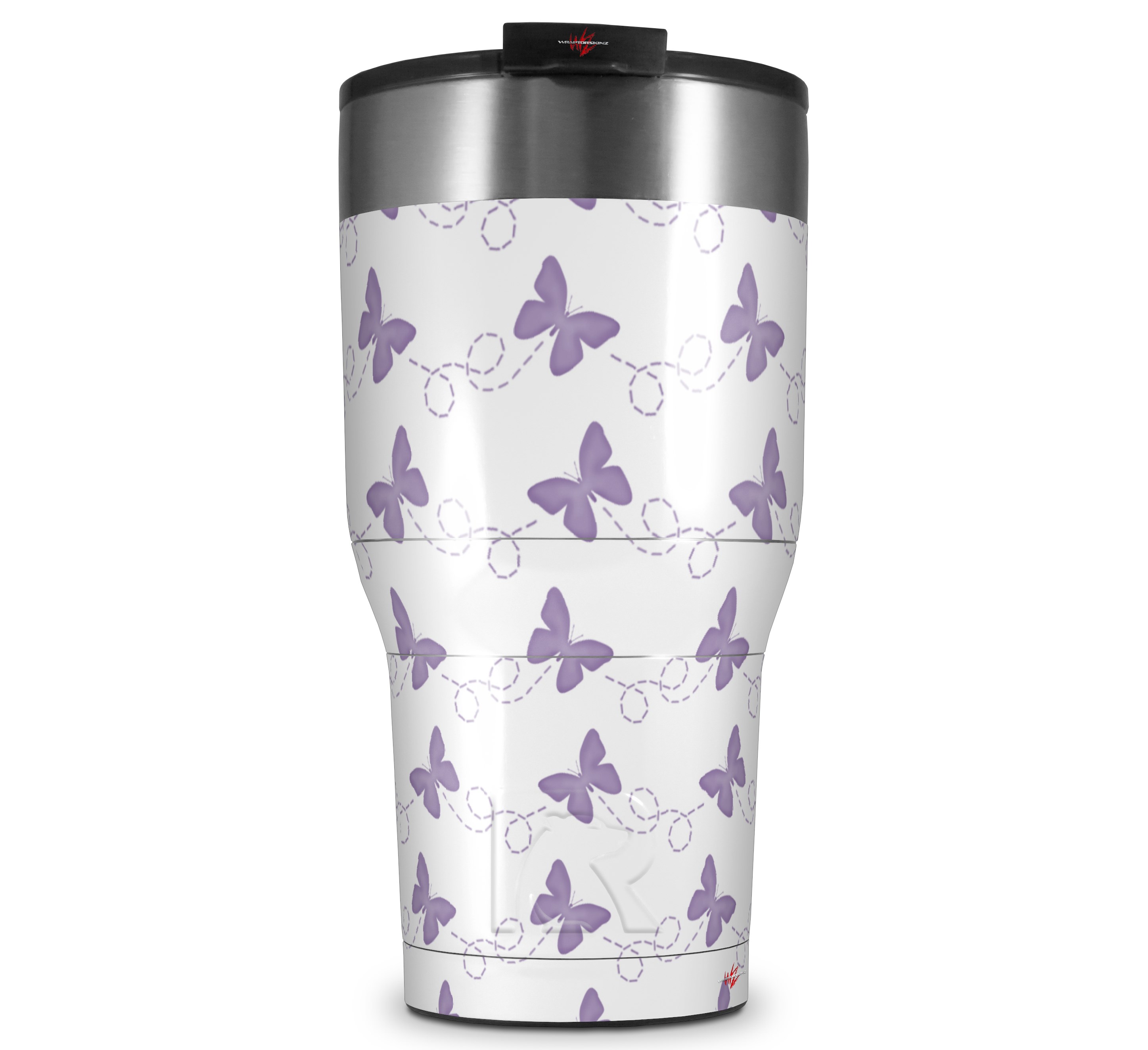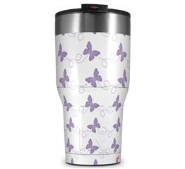 WraptorSkinz Skin Wrap compatible with 2017 and newer RTIC Tumblers 30oz Pastel Butterflies Purple on White (TUMBLER NOT INCLUDED)