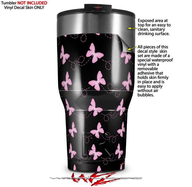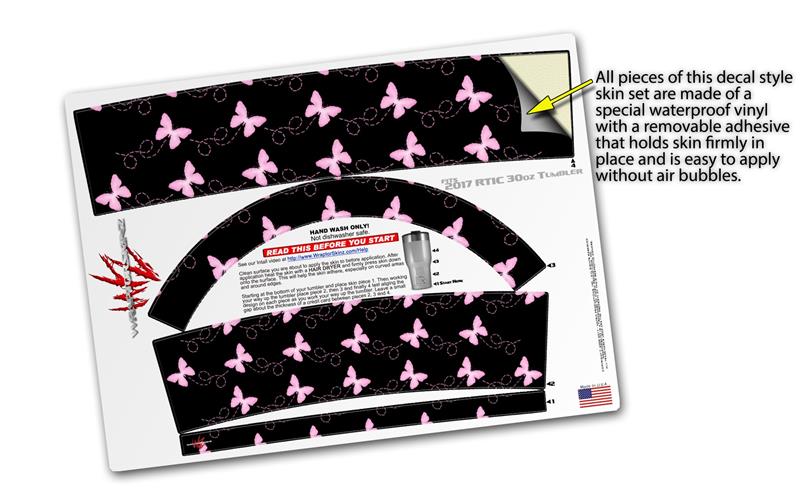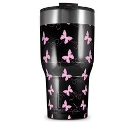 WraptorSkinz Skin Wrap compatible with 2017 and newer RTIC Tumblers 30oz Pastel Butterflies Pink on Black (TUMBLER NOT INCLUDED)