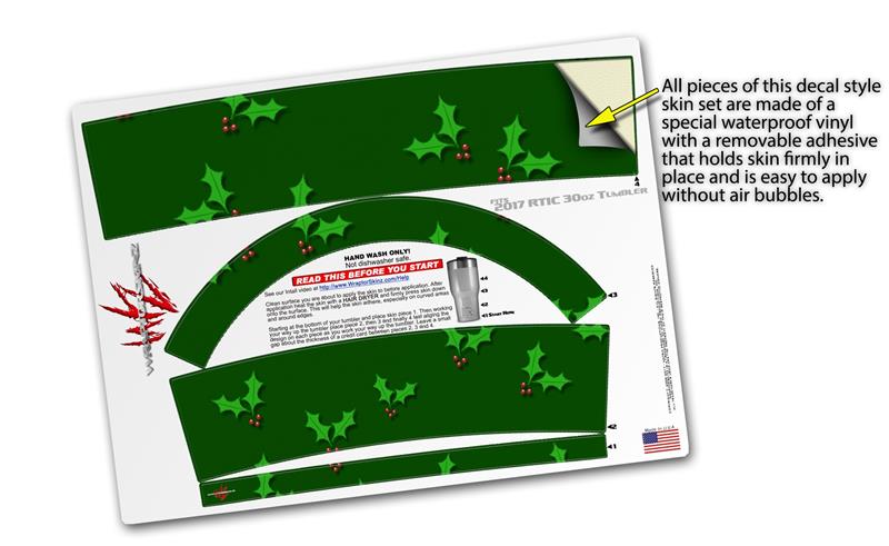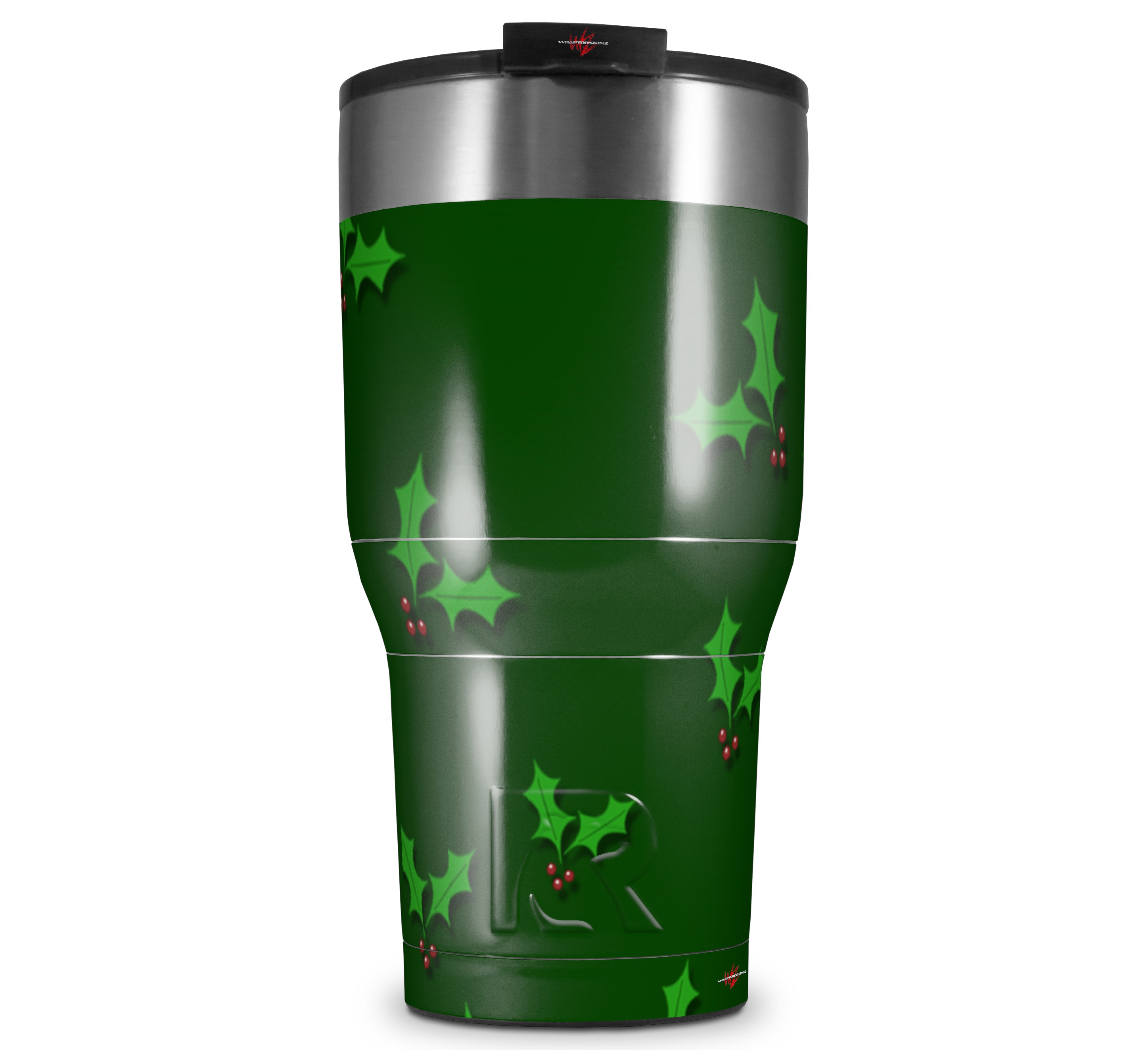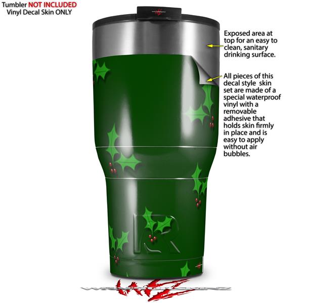 WraptorSkinz Skin Wrap compatible with 2017 and newer RTIC Tumblers 30oz Christmas Holly Leaves on Green (TUMBLER NOT INCLUDED)