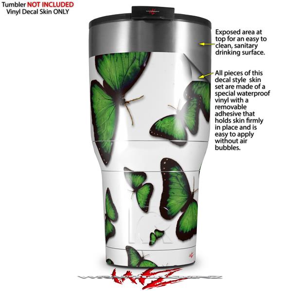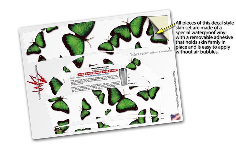 WraptorSkinz Skin Wrap compatible with 2017 and newer RTIC Tumblers 30oz Butterflies Green (TUMBLER NOT INCLUDED)