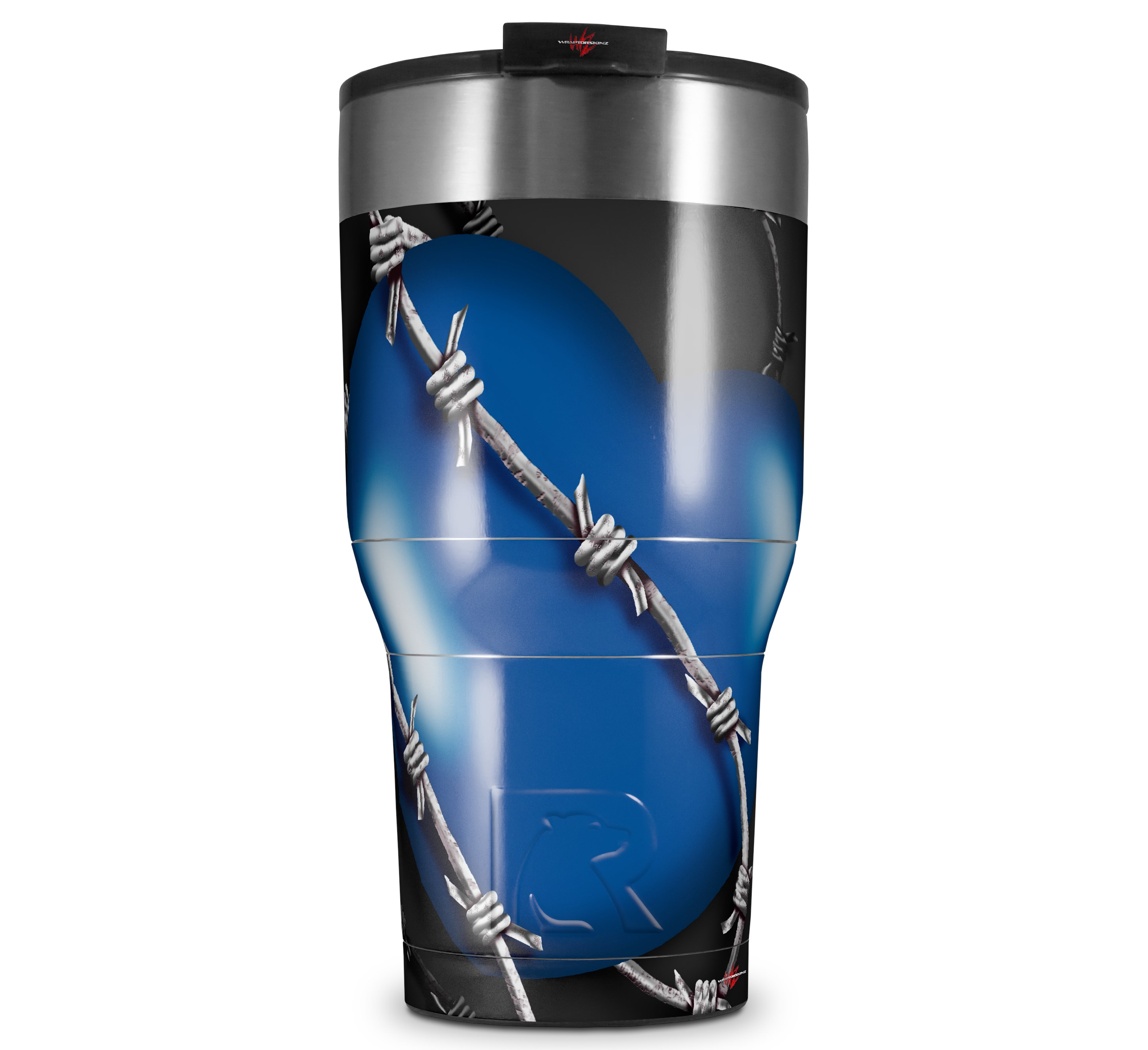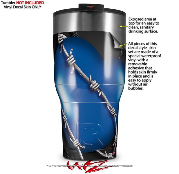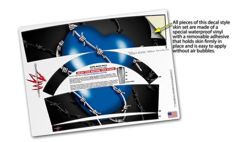 WraptorSkinz Skin Wrap compatible with 2017 and newer RTIC Tumblers 30oz Barbwire Heart Blue (TUMBLER NOT INCLUDED)