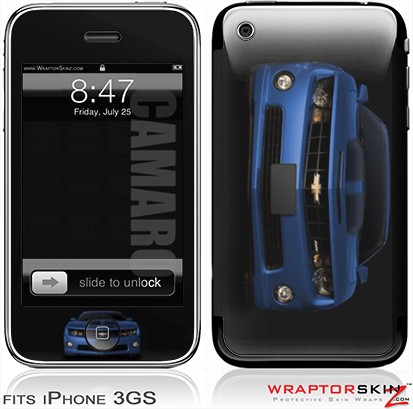 iPhone 3GS Decal Style Skin - 2010 Chevy Camaro Aqua - Black Stripes