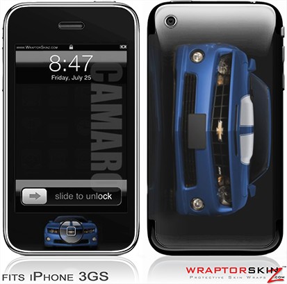 iPhone 3GS Decal Style Skin - 2010 Chevy Camaro Aqua - White Stripes