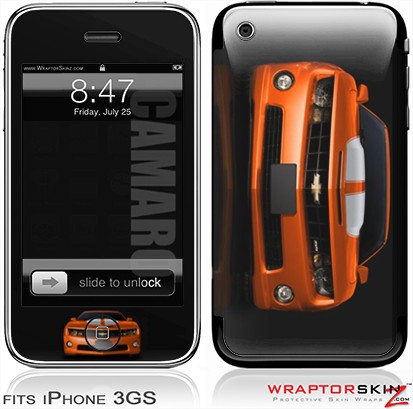 iPhone 3GS Decal Style Skin - 2010 Chevy Camaro Orange - White Stripes