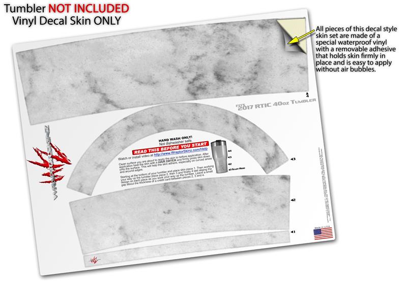 Skin Wrap Decal for 2017 RTIC Tumblers 40oz Marble Granite 07 White Gray (TUMBLER NOT INCLUDED)