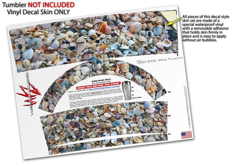 Skin Wrap Decal for 2017 RTIC Tumblers 40oz Sea Shells (TUMBLER NOT INCLUDED)