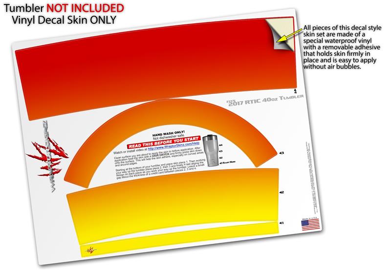 Skin Wrap Decal for 2017 RTIC Tumblers 40oz Smooth Fades Yellow Red (TUMBLER NOT INCLUDED)