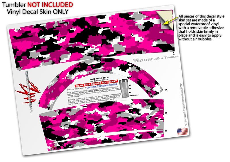 Skin Wrap Decal for 2017 RTIC Tumblers 40oz WraptorCamo Digital Camo Hot Pink (TUMBLER NOT INCLUDED)