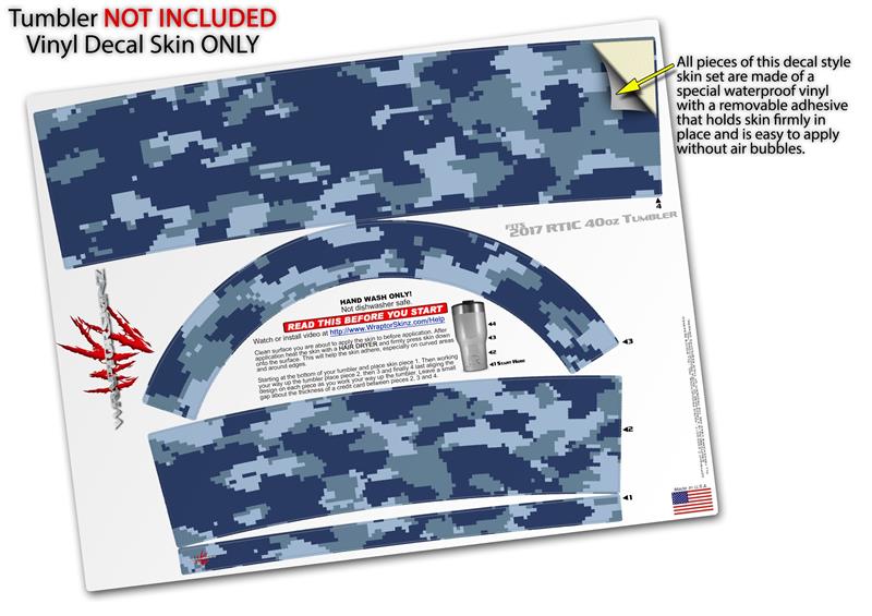 Skin Wrap Decal for 2017 RTIC Tumblers 40oz WraptorCamo Digital Camo Navy (TUMBLER NOT INCLUDED)