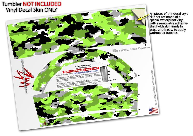 Skin Wrap Decal for 2017 RTIC Tumblers 40oz WraptorCamo Digital Camo Neon Green (TUMBLER NOT INCLUDED)