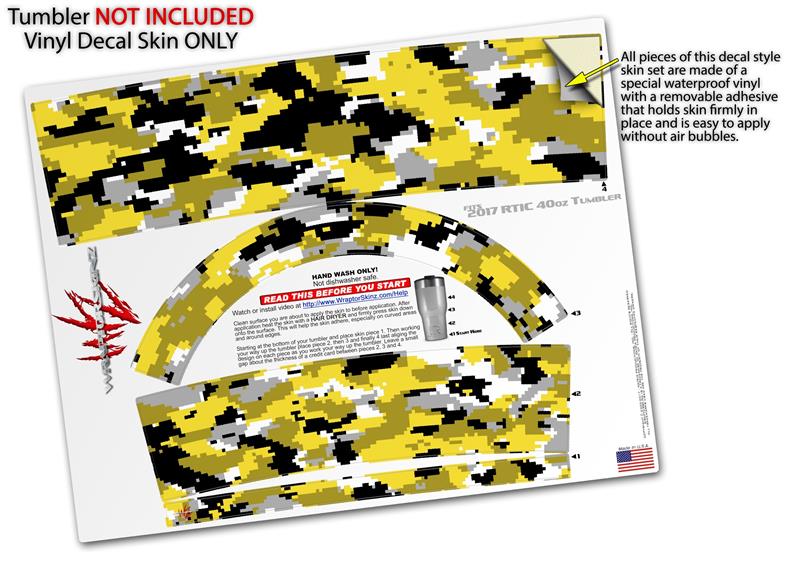 Skin Wrap Decal for 2017 RTIC Tumblers 40oz WraptorCamo Digital Camo Yellow (TUMBLER NOT INCLUDED)