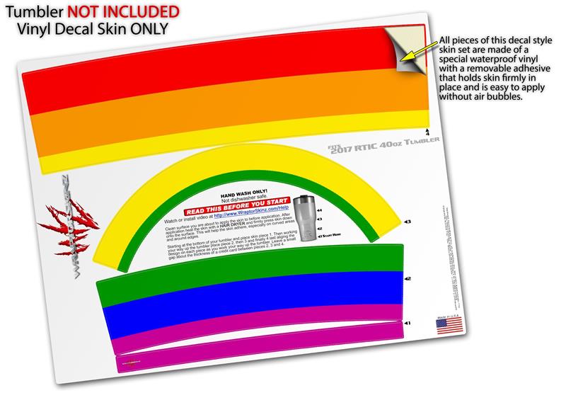 Skin Wrap Decal for 2017 RTIC Tumblers 40oz Rainbow Stripes (TUMBLER NOT INCLUDED)