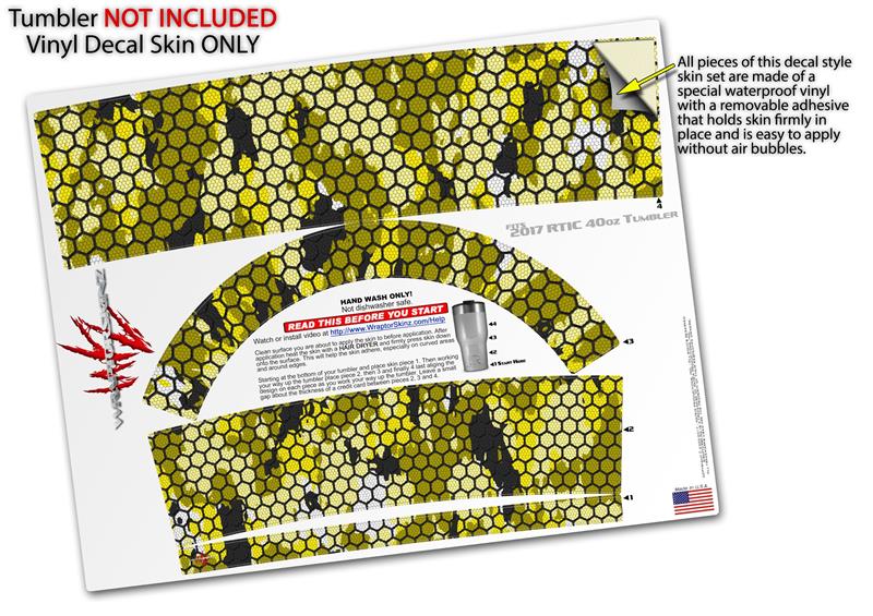 Skin Wrap Decal for 2017 RTIC Tumblers 40oz HEX Mesh Camo 01 Yellow (TUMBLER NOT INCLUDED)