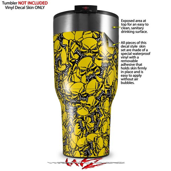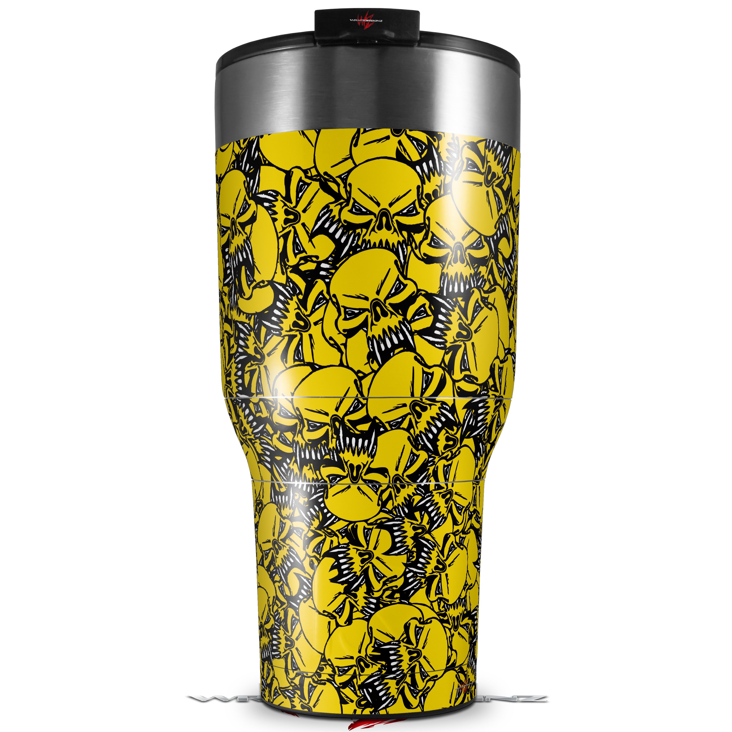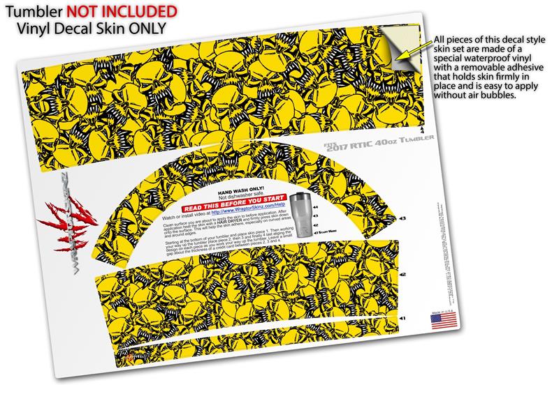 Skin Wrap Decal for 2017 RTIC Tumblers 40oz Scattered Skulls Yellow (TUMBLER NOT INCLUDED)