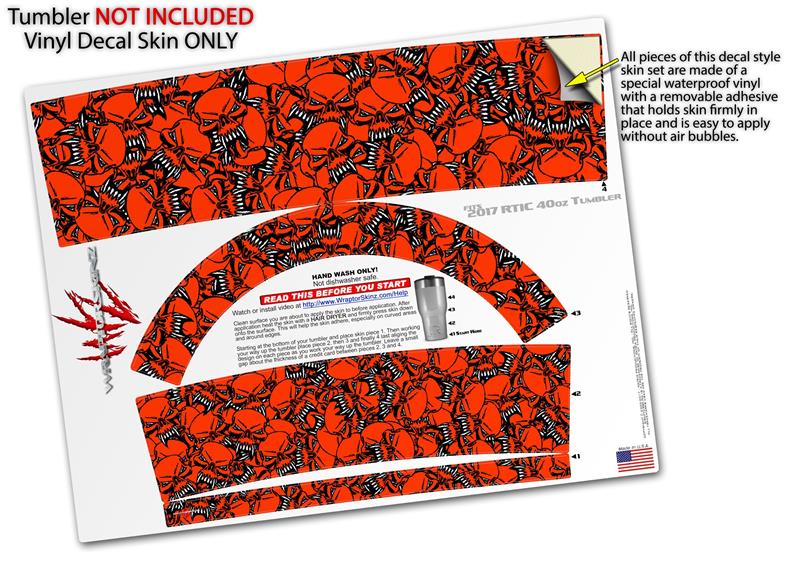Skin Wrap Decal for 2017 RTIC Tumblers 40oz Scattered Skulls Red (TUMBLER NOT INCLUDED)