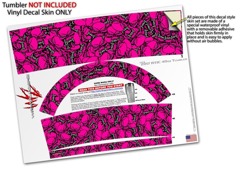 Skin Wrap Decal for 2017 RTIC Tumblers 40oz Scattered Skulls Hot Pink (TUMBLER NOT INCLUDED)