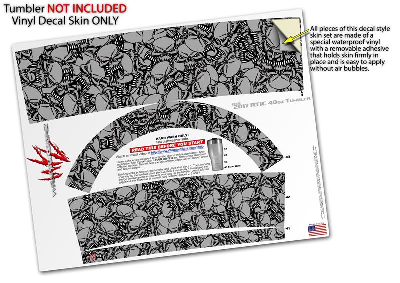 Skin Wrap Decal for 2017 RTIC Tumblers 40oz Scattered Skulls Gray (TUMBLER NOT INCLUDED)