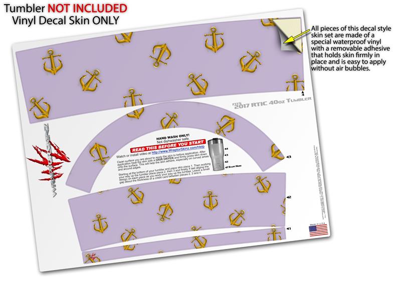 Skin Wrap Decal for 2017 RTIC Tumblers 40oz Anchors Away Lavender (TUMBLER NOT INCLUDED)