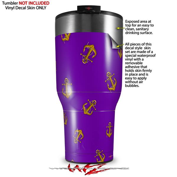Skin Wrap Decal for 2017 RTIC Tumblers 40oz Anchors Away Purple (TUMBLER NOT INCLUDED)