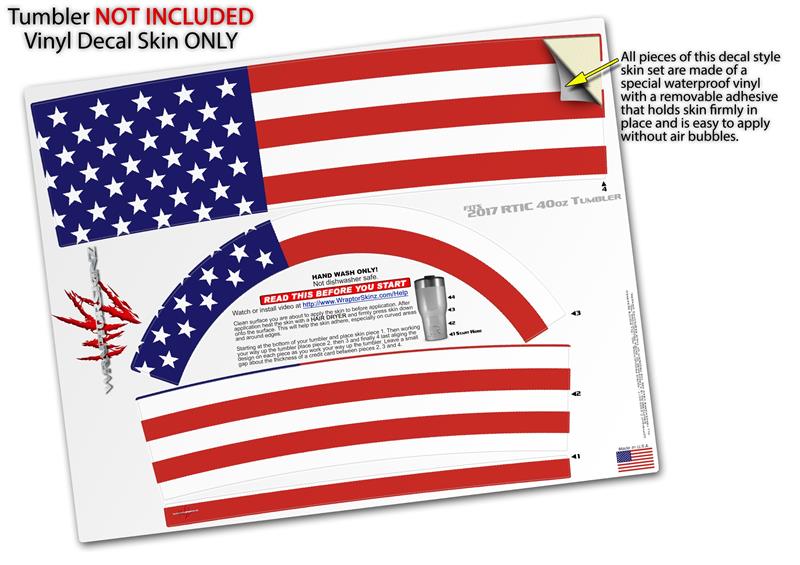 Skin Wrap Decal for 2017 RTIC Tumblers 40oz USA American Flag 01 (TUMBLER NOT INCLUDED)