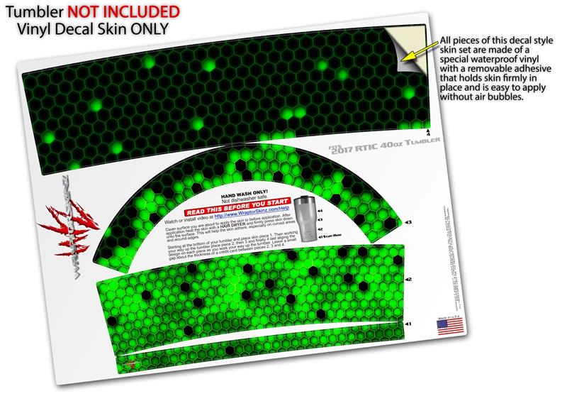 Skin Wrap Decal for 2017 RTIC Tumblers 40oz HEX Green (TUMBLER NOT INCLUDED)