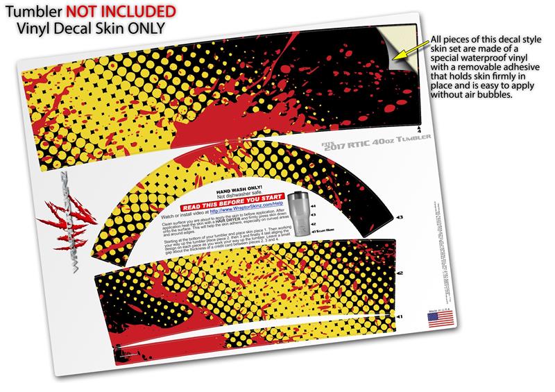 Skin Wrap Decal for 2017 RTIC Tumblers 40oz Halftone Splatter Yellow Red (TUMBLER NOT INCLUDED)