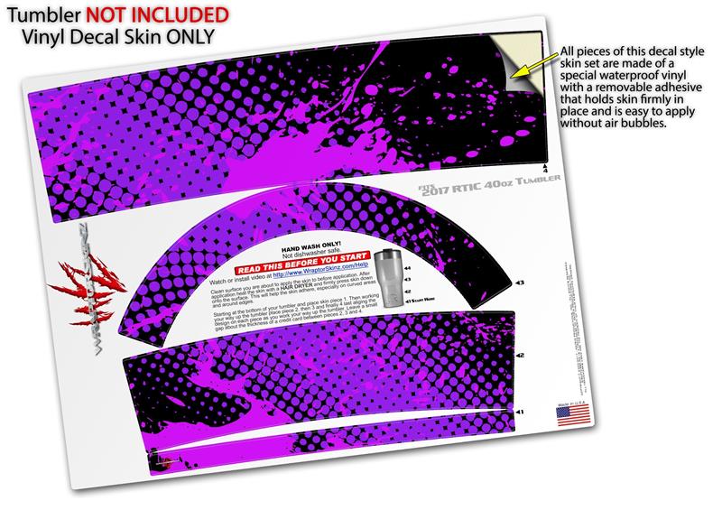 Skin Wrap Decal for 2017 RTIC Tumblers 40oz Halftone Splatter Hot Pink Purple (TUMBLER NOT INCLUDED)