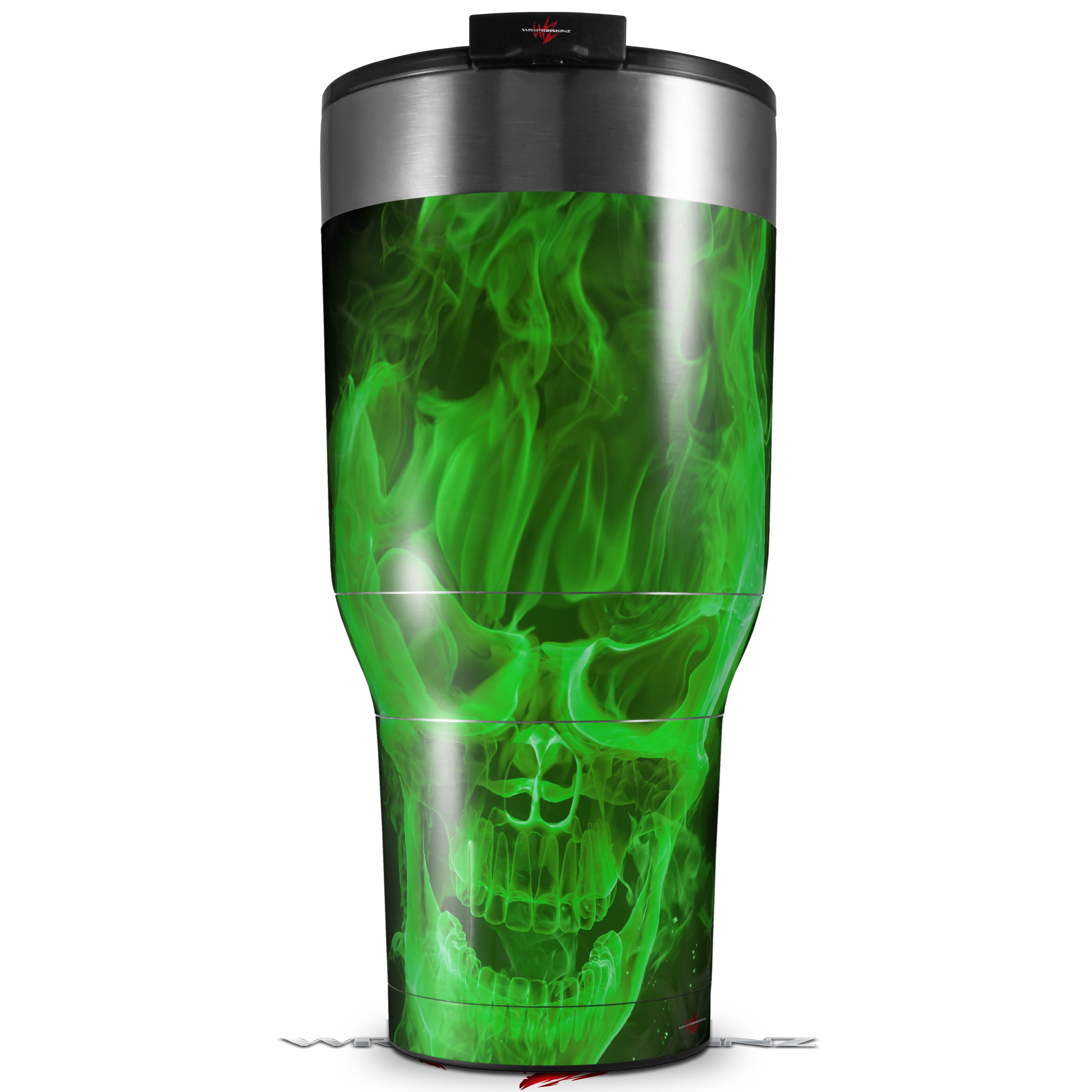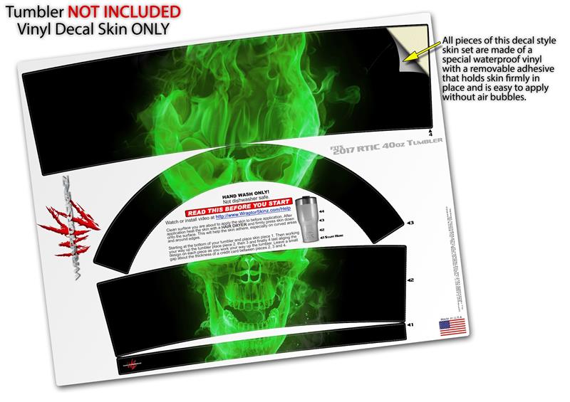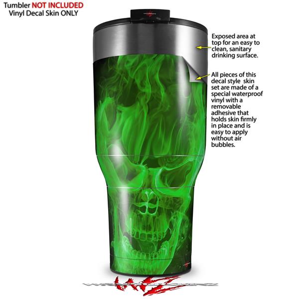 Skin Wrap Decal for 2017 RTIC Tumblers 40oz Flaming Fire Skull Green (TUMBLER NOT INCLUDED)
