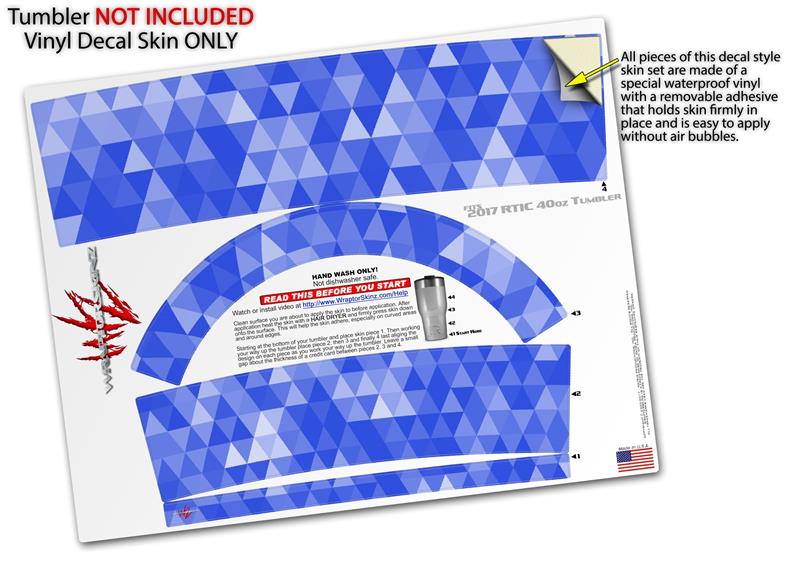 Skin Wrap Decal for 2017 RTIC Tumblers 40oz Triangle Mosaic Blue (TUMBLER NOT INCLUDED)