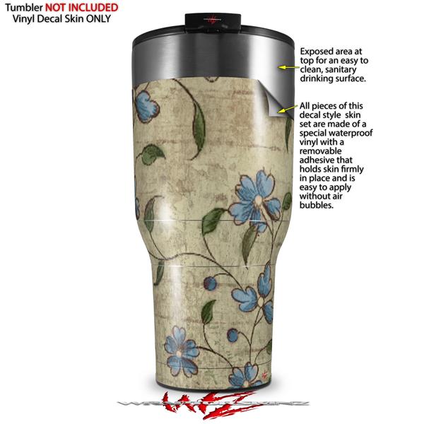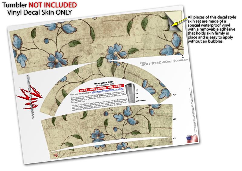 Skin Wrap Decal for 2017 RTIC Tumblers 40oz Flowers and Berries Blue (TUMBLER NOT INCLUDED)
