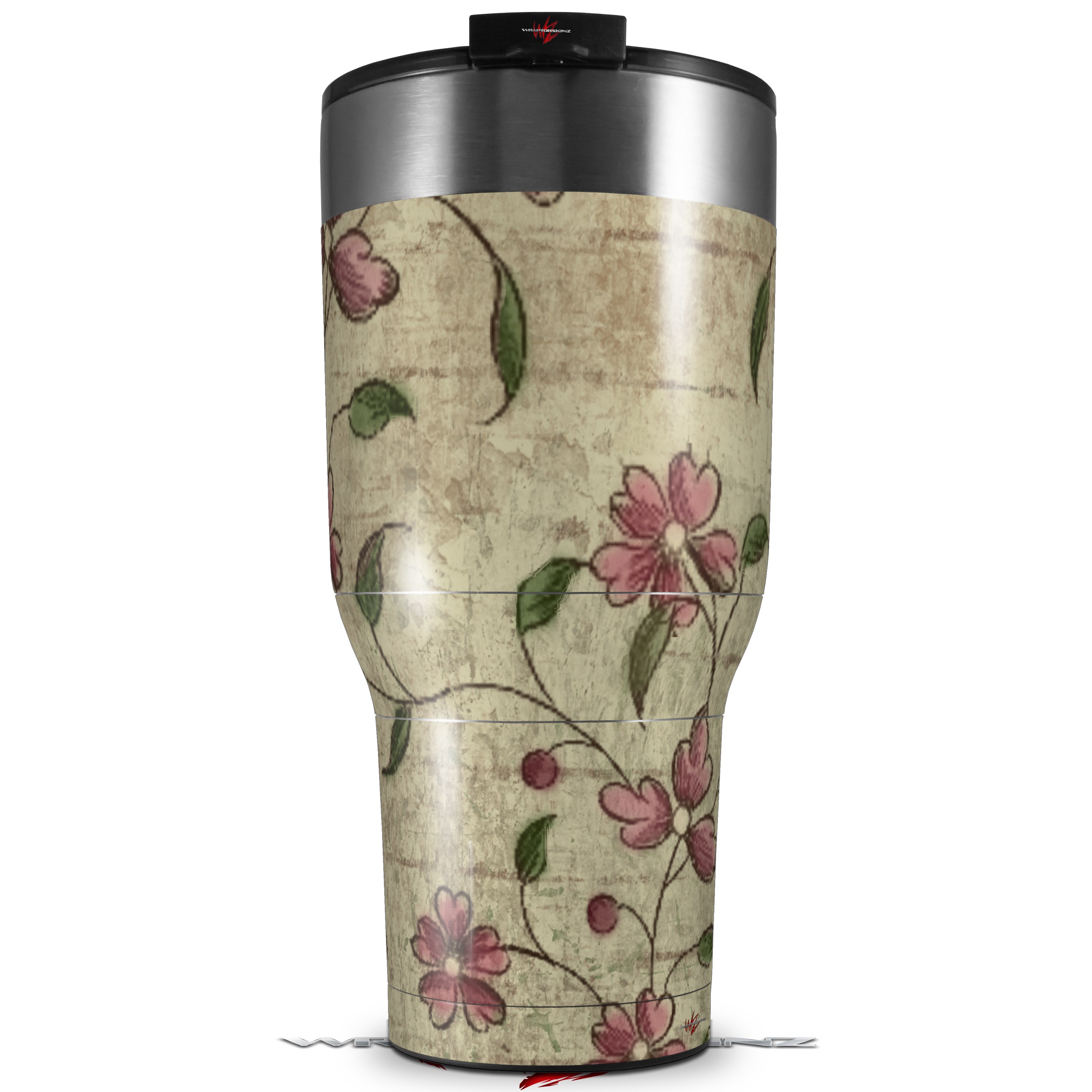 Skin Wrap Decal for 2017 RTIC Tumblers 40oz Flowers and Berries Pink (TUMBLER NOT INCLUDED)