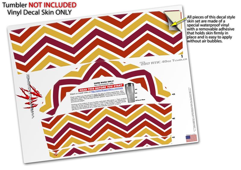 Skin Wrap Decal for 2017 RTIC Tumblers 40oz Zig Zag Yellow Burgundy Orange (TUMBLER NOT INCLUDED)