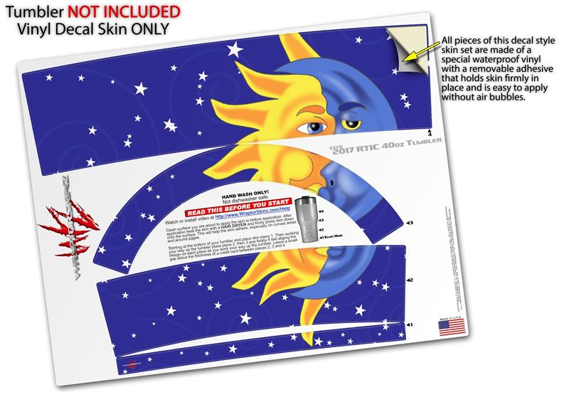 Skin Wrap Decal for 2017 RTIC Tumblers 40oz Moon Sun (TUMBLER NOT INCLUDED)