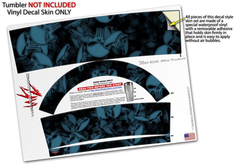 Skin Wrap Decal for 2017 RTIC Tumblers 40oz Skulls Confetti Blue (TUMBLER NOT INCLUDED)