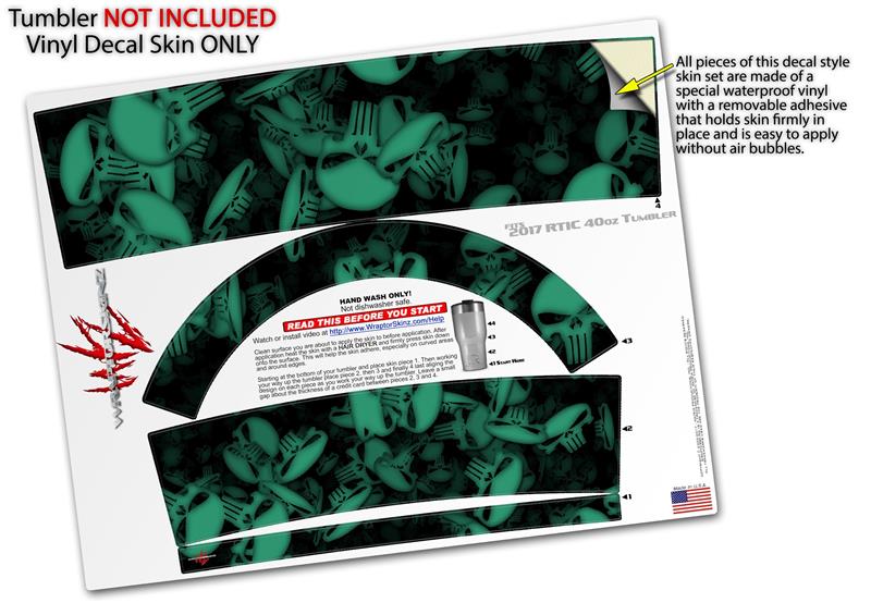 Skin Wrap Decal for 2017 RTIC Tumblers 40oz Skulls Confetti Seafoam Green (TUMBLER NOT INCLUDED)