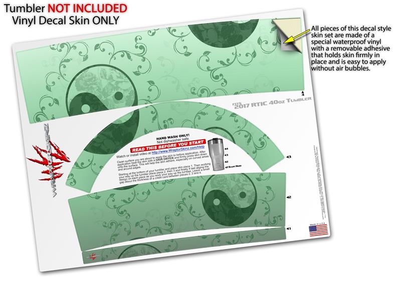 Skin Wrap Decal for 2017 RTIC Tumblers 40oz Feminine Yin Yang Green (TUMBLER NOT INCLUDED)