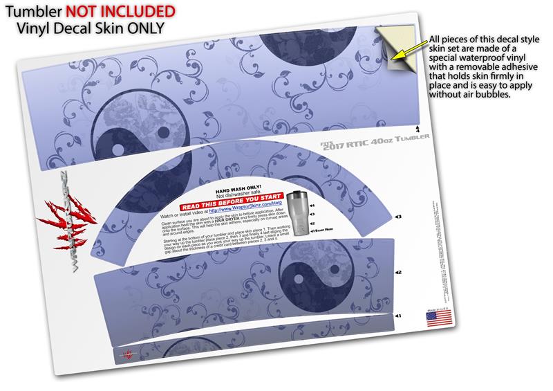 Skin Wrap Decal for 2017 RTIC Tumblers 40oz Feminine Yin Yang Blue (TUMBLER NOT INCLUDED)