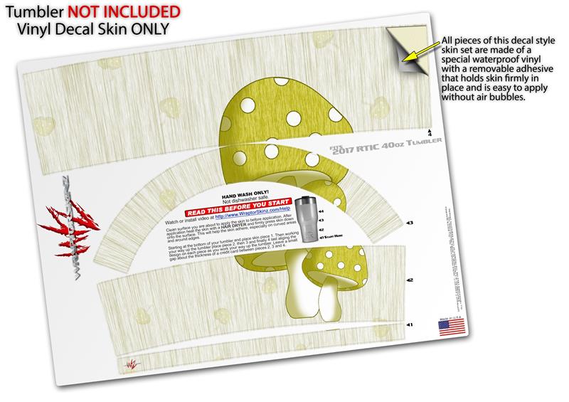 Skin Wrap Decal for 2017 RTIC Tumblers 40oz Mushrooms Yellow (TUMBLER NOT INCLUDED)