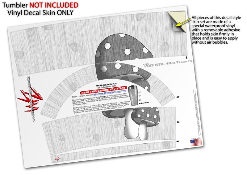 Skin Wrap Decal for 2017 RTIC Tumblers 40oz Mushrooms Gray (TUMBLER NOT INCLUDED)