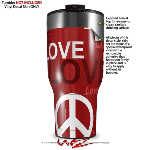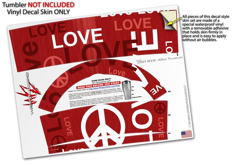 Skin Wrap Decal for 2017 RTIC Tumblers 40oz Love and Peace Red (TUMBLER NOT INCLUDED)