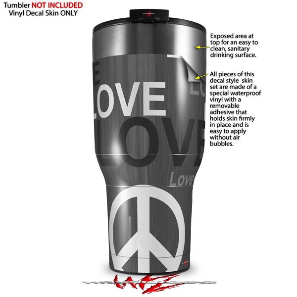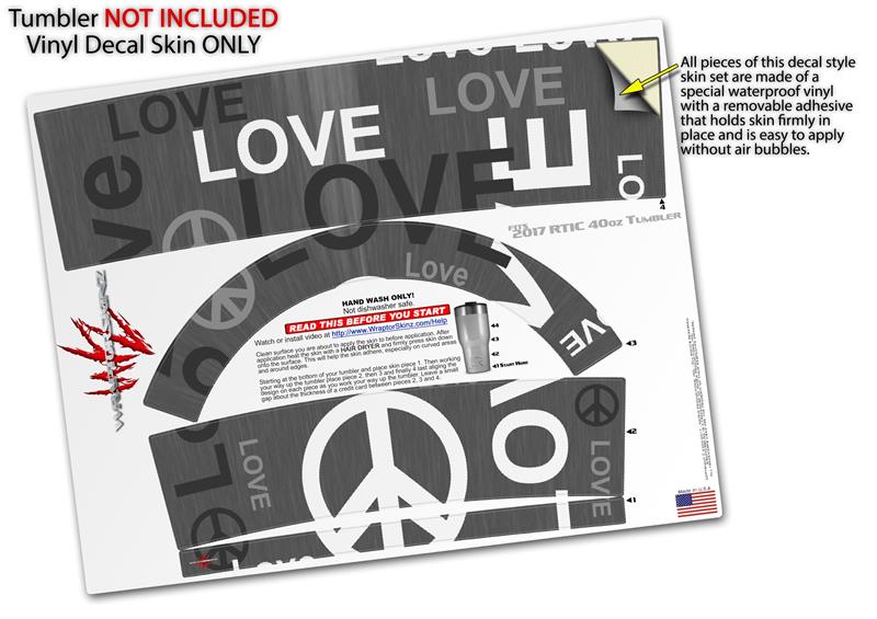 Skin Wrap Decal for 2017 RTIC Tumblers 40oz Love and Peace Gray (TUMBLER NOT INCLUDED)