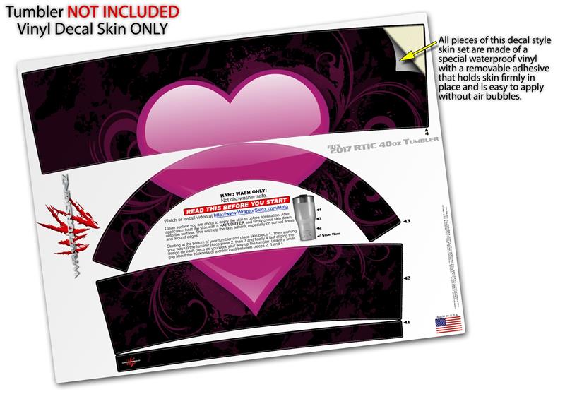 Skin Wrap Decal for 2017 RTIC Tumblers 40oz Glass Heart Grunge Hot Pink (TUMBLER NOT INCLUDED)