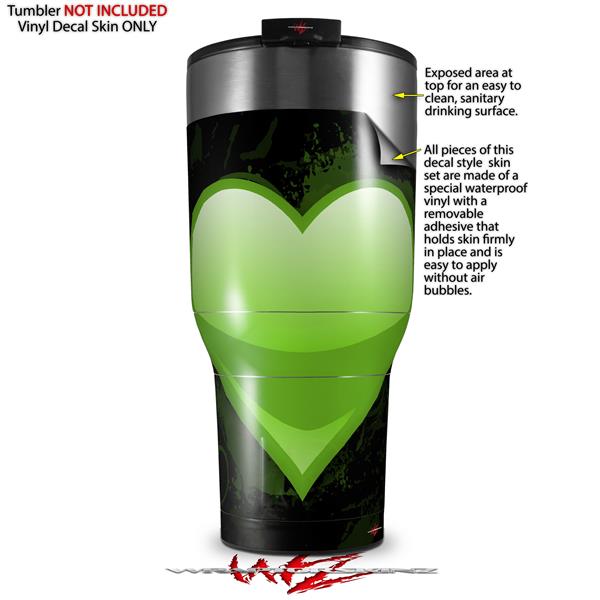 Skin Wrap Decal for 2017 RTIC Tumblers 40oz Glass Heart Grunge Green (TUMBLER NOT INCLUDED)