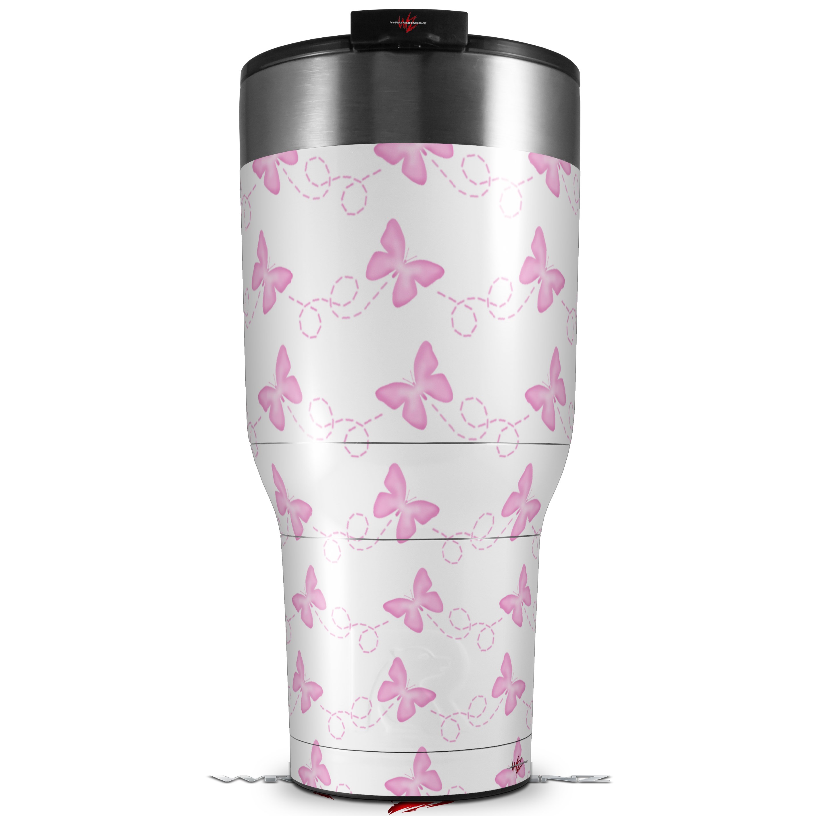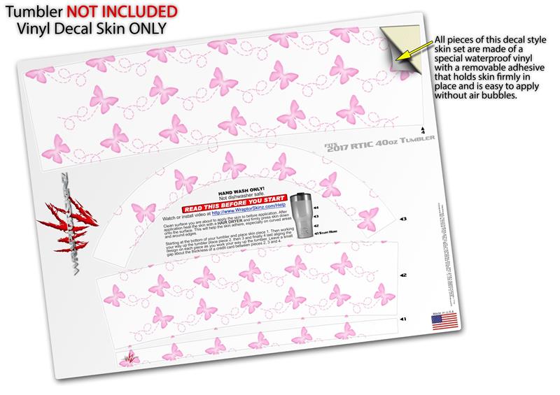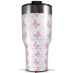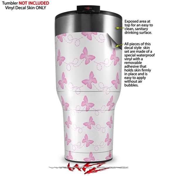 Skin Wrap Decal for 2017 RTIC Tumblers 40oz Pastel Butterflies Pink on White (TUMBLER NOT INCLUDED)